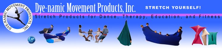 Dancers, and dance therapists are often familiar with the highly dramatic and physically satisfying effects of stretch fabric. Dye-namic Movement Products, Inc.'s main goal is to design safe and durable ways of using it in both individual and group educational, therapeutic, and recreational settings. We also offer instructional DVD's and specific product trainings.
